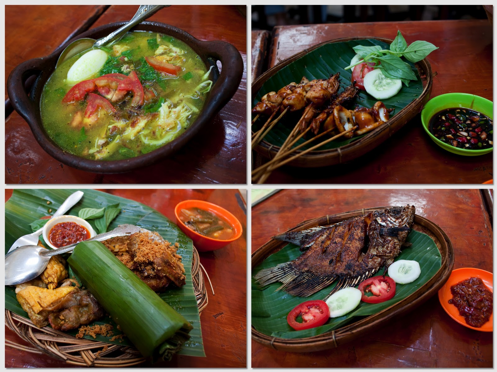 Each vendor seeks distinction, but "sate madura" –- served with rice cakes (ketupat) and diced cucumber and onion -– is distinguished by its boat-shaped street carts.