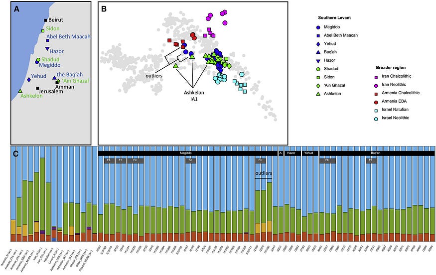 I want to emphasize how insanely cool these findings are.What are the odds that the handful of named Hurrians in the scraps of surviving texts we have would yield us actually finding genetic evidence of recent northeastern migrants in Megiddo? This is like picking up a dart at one side of a football field during a hurricane, throwing it across the field, and hitting a bullseye.